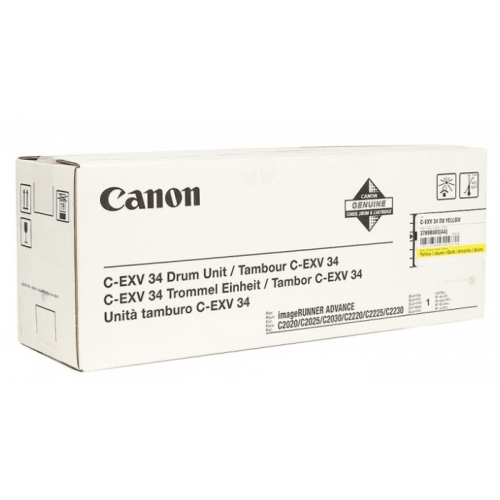 Оригинальный барабан Canon 3789b003aa (C-EXV34Y DU) устанавливается и используются на тонере желтого цвета в полноцветных принтерах:
